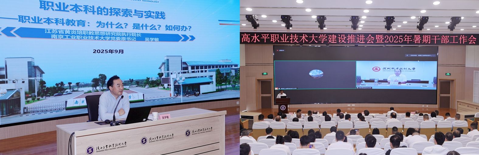 会议特邀南京工业职业技术大学原党委书记、现任江苏省中华职业教育社副主任吴学敏,深圳职业技术大学校长许建领为与会干部作专题培训。宣传部、人事处、教务处、学工部、就业处、科研处、机械工程学院、电气工程学院部门负责人围绕暑期调研及下一步工作设想进行了汇报。校领导班子成员、处科级干部,教研室主任、专业带头人参加会议。