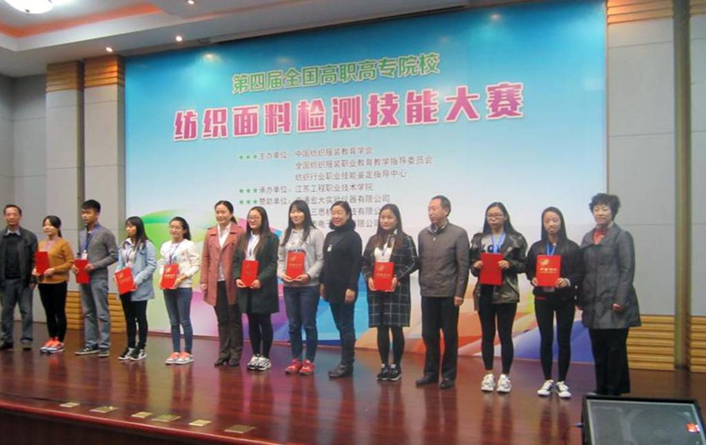 本次大赛由中国纺织服装教育学会和中国纺织服装技能鉴定中心联合举办,江苏工程职业技术学院承办,来自全国18所高职高专院校的87名选手参加了比赛。我院由杨小侠、严瑛两位教师指导,纺织品检验与贸易1302班张阳、张艳娇;纺织品检验与贸易1301班李玺、惠冰雪、石美静五名同学参赛。