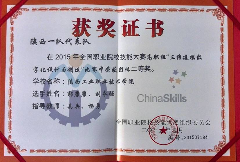 我院学生获全国职业院校技能大赛三维建模数字化设计与制造赛项团体二等奖