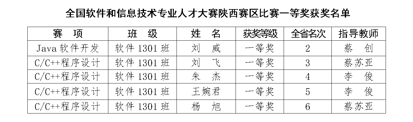 我院5名学生获全国软件和信息技术专业人才大赛陕西赛区一等奖