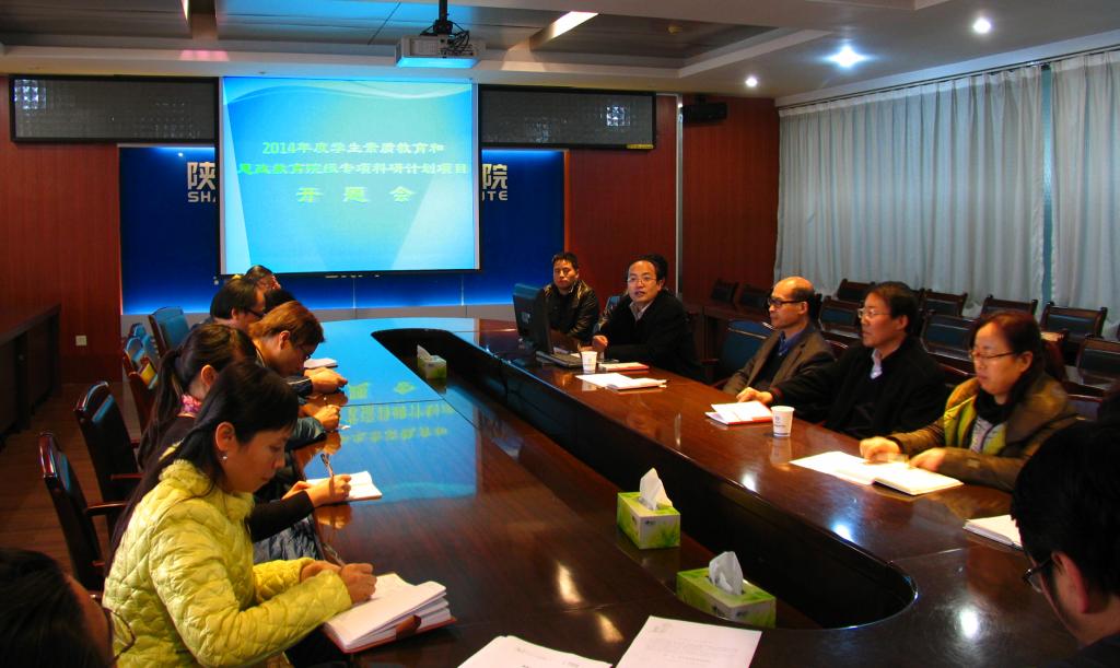 11月28日下午,2014年度学生素质教育和思想政治教育院级专项科研计划项目开题会在崇文南楼第一会议室举行,党委副书记王天哲、副院长王晓江及七个项目组成员参加会议,科研处处长黎炜主持会议。