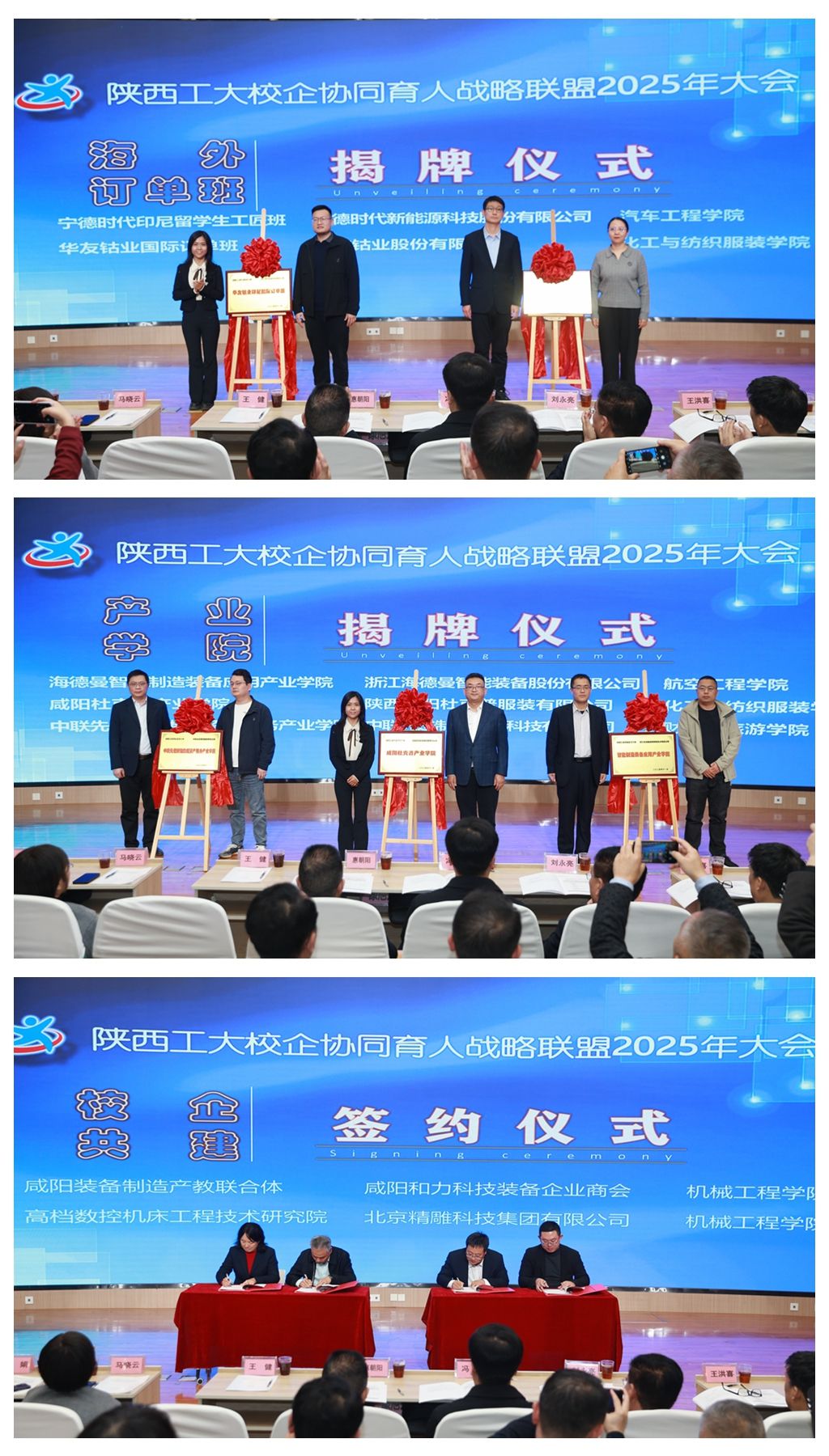 海外订单班揭牌仪式、产业学院揭牌仪式、校企共建签约仪式