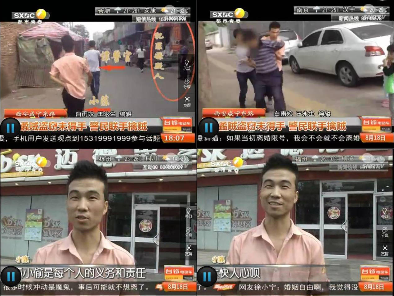 8月18日,陕西电视台都市青春频道报道了我院工商管理学院会电1109班陈风军同学协助民警,奋不顾身,勇擒小偷的英勇事迹。