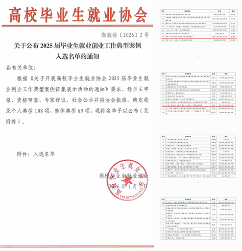 本次案例征集活动由高校毕业生就业协会主办,旨在总结并推广各高校在“促就业、强创业”方面的有效经验与特色做法。经过申报、审查、评审及公示等流程,最终在全国范围内收录集体典型69项、个人典型108项。我校推荐案例凭借其显著的实践性、创新性与可推广性,受到评审专家的充分肯定。