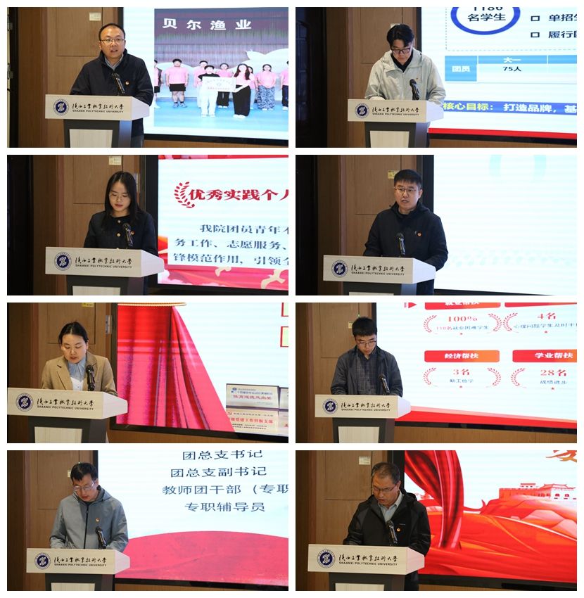 会上,参评五四红旗团总支的二级学院团总支书记依次进行现场汇报。大家围绕思想引领、组织建设、服务青年、服务大局等方面,亮数据、讲成效、谈不足、谋思路,全面展示了过去一年各学院共青团工作的特色与成果。汇报过程重点突出、内容详实,充分展现了基层团干部锐意进取、担当实干的精神风貌。随后,参评共青团先进工作者的同志立足岗位职责,围绕履职尽责与基础团务、思想引领与宣传教育、成长服务与实践育人、学术科创与素质拓展、特色工作与突出贡献等方面进行汇报,展示了具体做法与成效,认真剖析了存在的短板与不足,并提出了下一步努力方向。