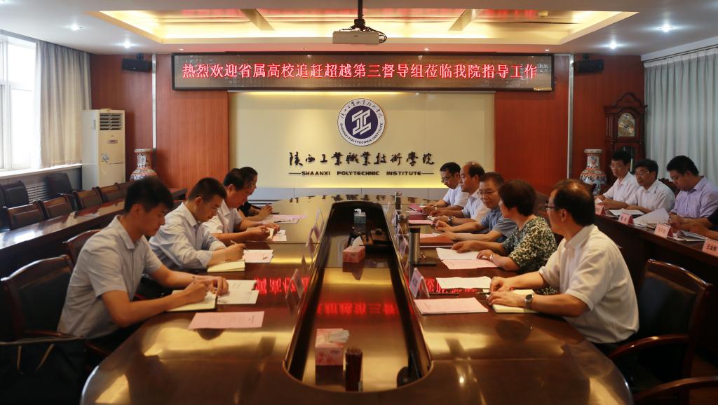 6月25日上午,省属高校追赶超越第三督导组组长宫浩兴一行四人莅临我院检查督导追赶超越实施进展工作,我院党委书记惠朝阳,院长张晓云,副院长梅创社、杨卫军,纪委书记康强热情接待了督导组一行。