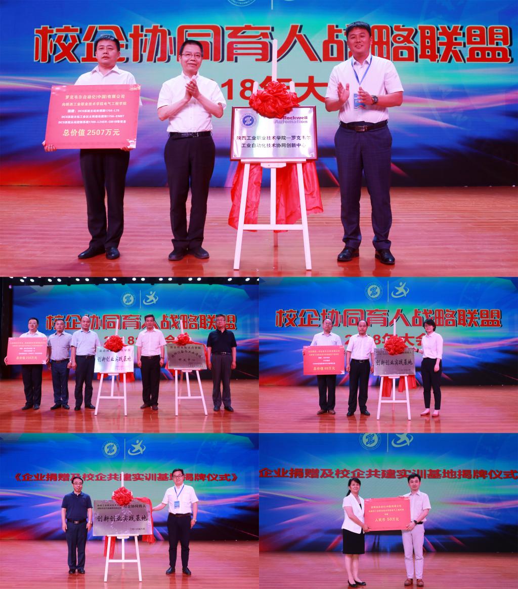 6月29日,美国罗克韦尔自动化公司、日本欧姆龙(上海)有限公司、美国亿滋食品(北京)有限公司、浙江海德曼智能装备股份有限公司、陕西正泰智能电气有限公司等72家国内外知名企业齐聚我院明德堂,参加陕西工院校企协同育人战略联盟2018年大会,共同谋划校企协同育人大计。