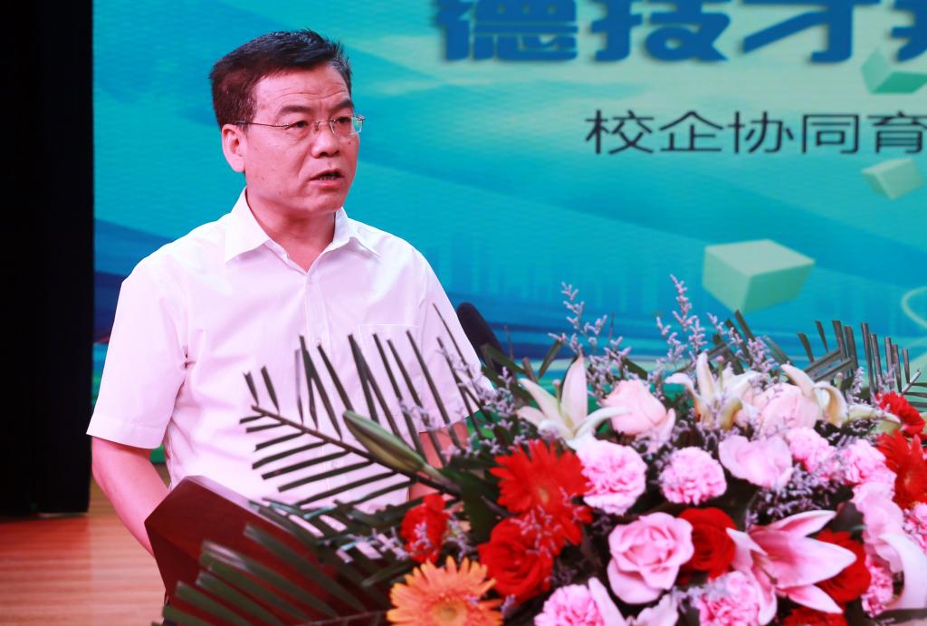 接着,与会领导为陕西工院“十大优秀毕业生”和首届“协同育人好师傅”“协同育人好导师”颁奖。省教育厅副厅长王紫贵发表讲话。他指出,陕西工院是我省高职的旗帜和领头羊,由它牵头组建的校企协同育人战略联盟,是进一步发挥政行企校多方参与、推进校企协同发展的良好平台,为我省高职教育与企业合作树立了标杆,发展迅速、成效明显。他希望学院当好东道主,借助联盟平台与各单位精诚合作、共话发展,携手共赢,不断壮大联盟力量,创新教育培养模式和组织形态,将教育内容向社会延伸,加快推进校企协同育人。联盟成员要加强交流、互学互鉴,为我省产教融合建言献策,为校企深度合作提供有益经验,努力将联盟打造成为全国校企合作的成功典范,为中国“智能制造”贡献力量。