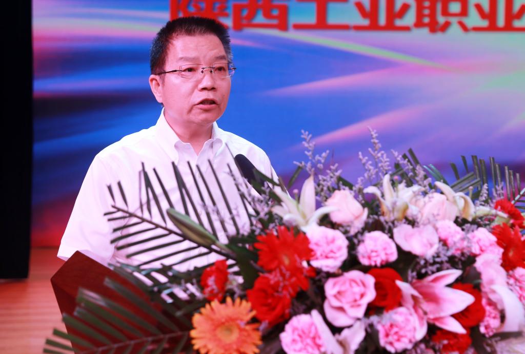 党委书记惠朝阳在致辞中代表全院师生员工,向与会的各位领导、企业代表表示欢迎,对各位领导、朋友们多年来对我院的关怀和支持表示感谢。他指出,让产教融合成为产业转型升级的“助推器”、促进就业的“稳定器”、人才红利的“催化器”,是当前发展现代职业教育的重中之重,也是我们高职院校更好地落实党的十九大精神、贯彻国务院办公厅《关于深化产教融合若干意见》的重要课题,更是有效践行现代职业教育理念和扎实推进陕西追赶超越总体要求的关键举措。