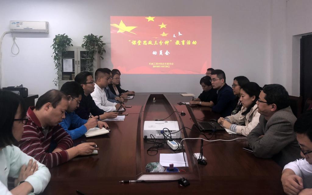 10月9日下午,机械工程学院党总支召开党员大会,针对在20名教师党员和20门专业课程中开展“课堂思政三分钟”教育活动进行了动员和安排。会议由党总支书记乌军锋主持。