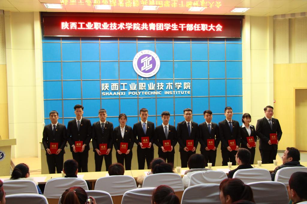 会上,团委书记郝平总结了2018年度共青团工作并与各二级学院团总支书记为学生干部代表颁发了聘书,郝书记希望新一届全体学生干部能够时刻不忘初心,传承优良作风,从自己做起,从身边做起。院团委老师焦蕾宣读了《陕西工业职业技术学院2018届团委学生干部任职决定》,院团委2018届执行委员会主席谯云龙同学代表全体学生干部发言,“春雷”志愿者服务队队长毛文超同学带领全体学生干部庄严宣誓。