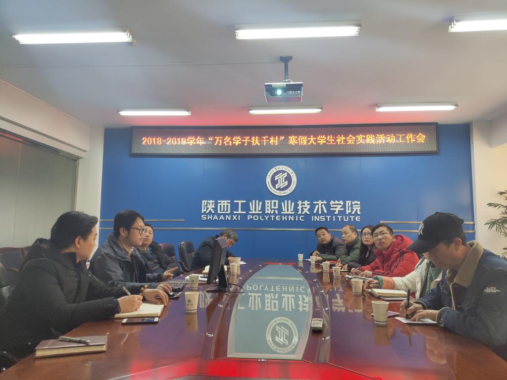 根据《中共陕西省委教育工委关于组织开展“万名学子扶千村”2019年寒假社会实践扶贫攻坚专项活动的通知》(陕教工团〔2019〕1号)文件精神,1月15日下午,院团委在崇文楼第三会议室举行了2018-2019学年“万名学子扶千村”寒假大学生社会实践活动工作会。团委书记郝平、各二级学院团总支书记、学生代表出席了本次会议。