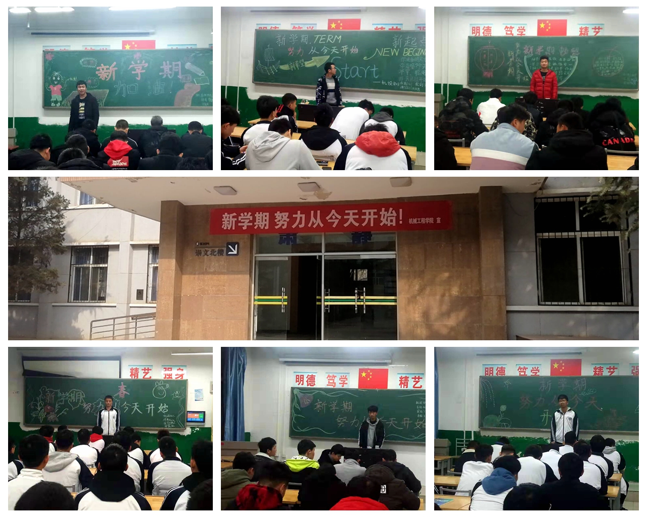 为做好新学期学生思想教育管理工作,加强和改进学风、班风和室风建设,开学伊始,机械工程学院连续两周利用周日班级例会时间,在大一、大二年级所有班级中组织召开了“新学期,努力从今天开始”主题班会。