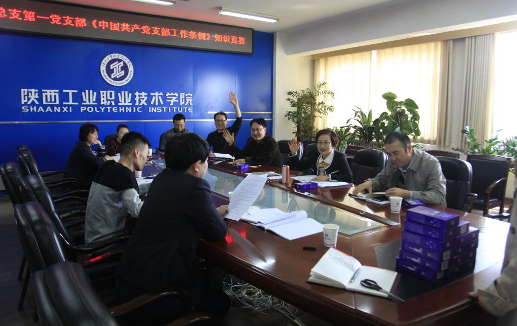 《中国共产党支部工作条例(试行)》出台后,机关第一党总支第一党支部给全体党员发放了《条例》读本,并给党员印发了《中国共产党支部工作条例(试行)》应知应会试题汇编》,认真组织党员进行专题学习。4月4日在崇文楼第三会议开展了一场精彩激烈的《中国共产党支部工作条例(试行)》知识竞赛。本次知识竞赛主要围绕《条例》相关内容,以必答题、抢答题两种形式展开。全体党员高度重视、认真准备、积极作答,现场气氛紧张而热烈,充分展示了党员团结进取、奋发向上的精神风貌。