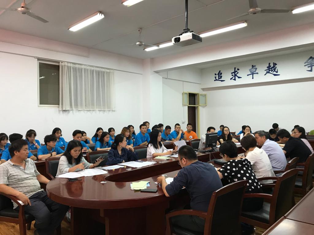 8月26日下午,商贸与流通学院召开2019级班主任、班主任助理培训会,党总支副书记王艳、全体辅导员、19级班主任和班主任助理共计四十余人参加会议,会议由学工办主任王尚宏主持。