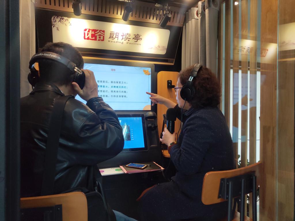 在高凤香馆长的陪同下,汪馆长一行首先参观了自然科学阅览室、社会科学阅览室、还书处、自习室等,对随同人员提出的疑问,我馆工作人员一一作答,让汪馆长一行对于陕西工业职业技术学院图书馆有了全面的认识。参观至朗读亭时,高凤香馆长同汪宏武馆长共同朗诵了《理想》。
