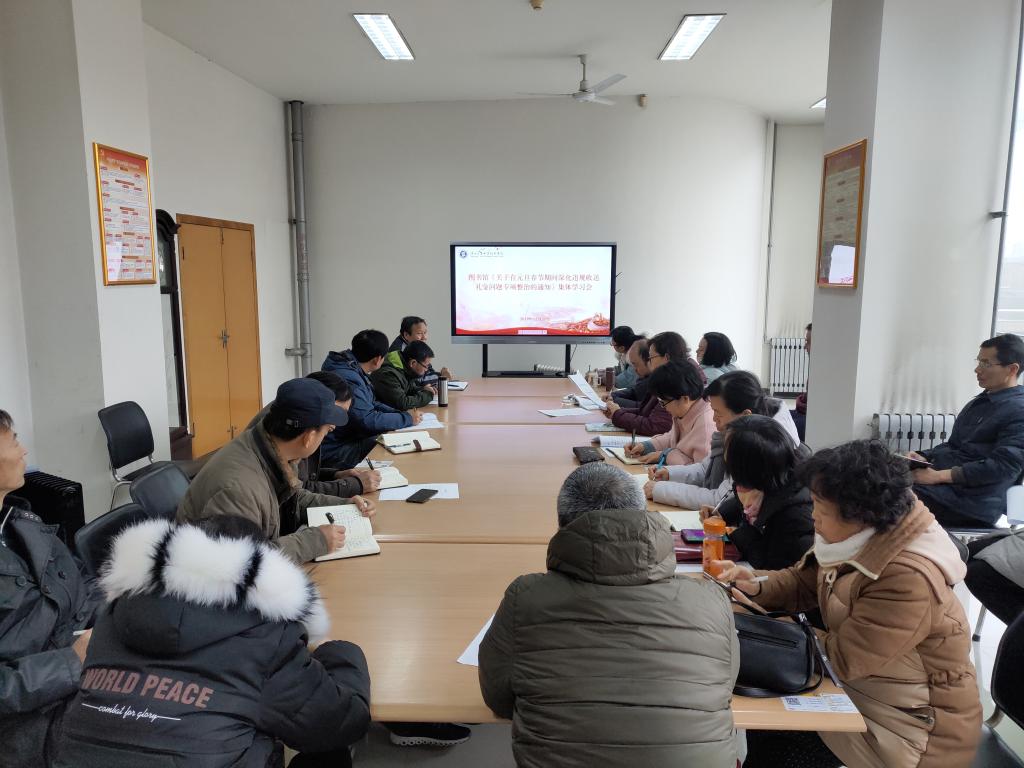 12月31日上午,图书馆在二楼会议室开展学习违规礼金问题专项整治工作会议精神,会议由图书馆馆长高凤香教授主持,全体馆员参加。