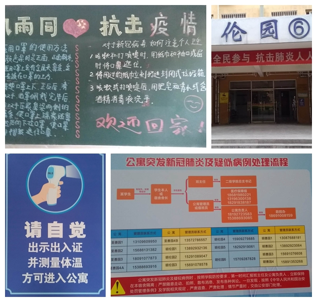 开学期间,我院学生处统筹规划、多措并举,借助多渠道做好公寓疫情宣传,引导学生返校后快速适应公寓生活,全方位做好公寓疫情防控工作,筑牢公寓防疫防线。