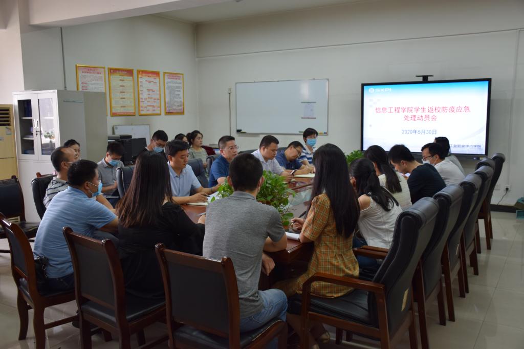 为保障信息工程学院学生返校后正常的学习、生活秩序,根据学院防疫相关文件要求,结合信息工程学院班级多、学生多的实际情况,5月30日下午,信息学院成立了党员防疫应急预备队并召开动员会。信息学院全体干部、辅导员及全体防疫预备队同志参加了会议。