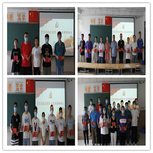 学生工作党支部书记宋远社、张旭,组织委员陈东梅为每位学生党员颁发捐款收据,并集体合影。
