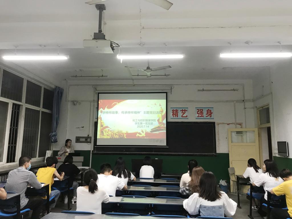 为庆祝中国共产党建党99周年,纪念那些对党和国家发展有积极影响的优秀共产党员,激励支部成员学习和传承榜样精神,强化“四个意识”,坚定“四个自信”,化纺服学院学生第一党支部于7月14日晚在笃学B107教室开展了“学榜样故事,传承榜样精神”主题党日活动,活动由学生第一党支部书记闫琼主持,支部全体党员参加。