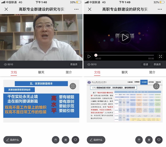 我院机械制造与自动化专业群带头人赵明威教授受邀为新疆伊犁州教师素质提升专题项目作培训,主要有人才培养方案及教师教学能力提升和机械制造与自动化专业群建设研究与实践两个培训内容。本次培训通过智慧树网络平台面向新疆伊犁州职业教育教师进行直播,赵明威教授报告期间5010人网上参与了我院专业群建设经验分享,学习人数为本次培训前列,培训效果受到一致好评,本次培训体现了我院作为双高建设院校发挥引领示范作用。
