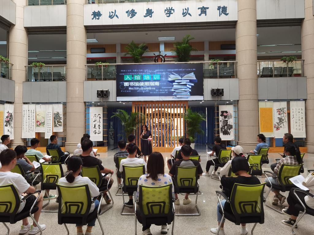 随后,图书馆办公室胡建鹏老师给新生们做了专题培训,分别从“知器——图书馆概况”、“用器—图书馆各类资源使用”、“利器—微信公众号与移动端(学习通)”、“阅读排行榜”等方面对图书馆做了详细介绍,并指导新生们科学使用图书馆的各类实用工具。