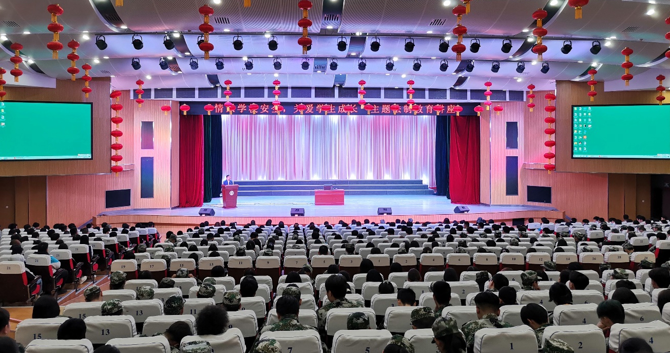 10月29日下午,我院学生法制教育讲座在明德大礼堂顺利开展,同时咸阳市公安局渭城分局、文汇路派出所民警也进入校园进行了“预防电信网络诈骗”相关宣传。咸阳市公安局渭城分局王甲睿及文汇路派出所张智刚两位警官在明德大礼堂应邀为我院师生做了“情系学校安全,关爱学生成长”的主题法制教育讲座,会议由保卫处副处长胡建辉主持。