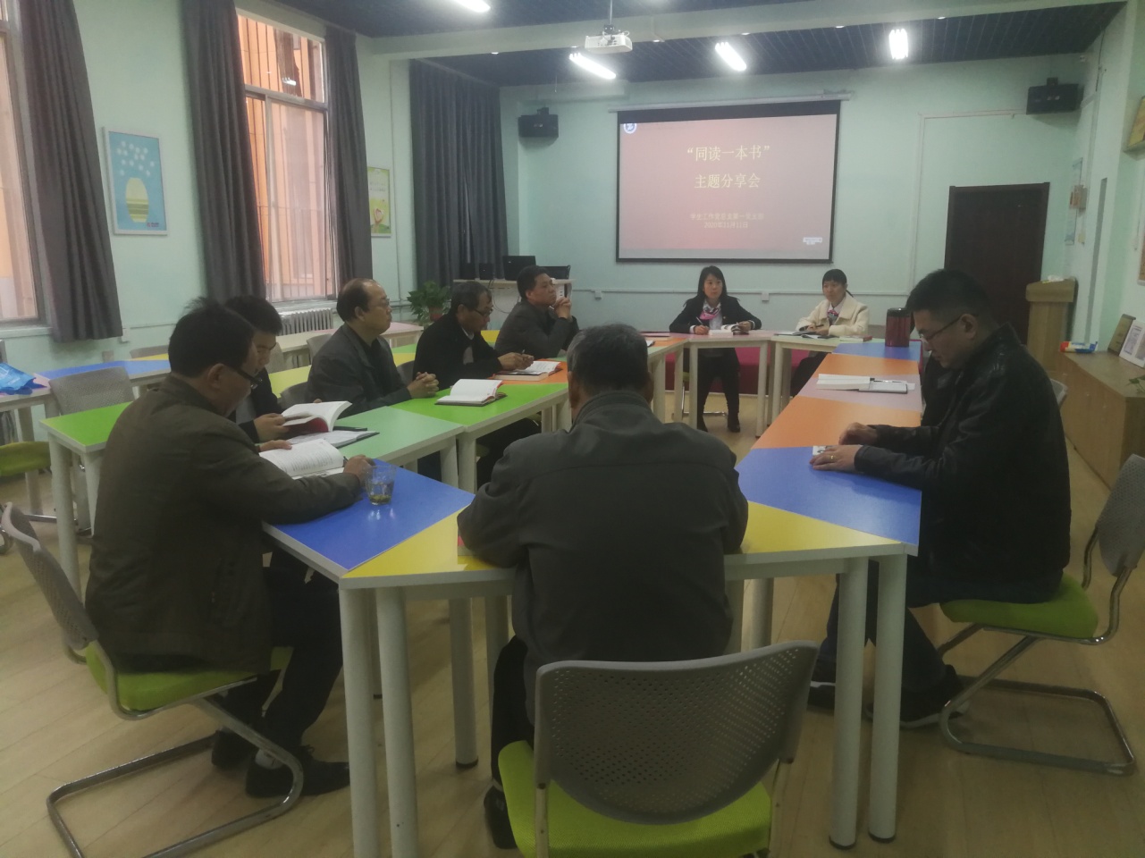 11月11日上午,学生工作党总支第一党支部全体党员在大学生思想政治温馨港团体辅导室开展了主题党日活动——“同读一本书”分享会。会议由支部书记耿丽主持。