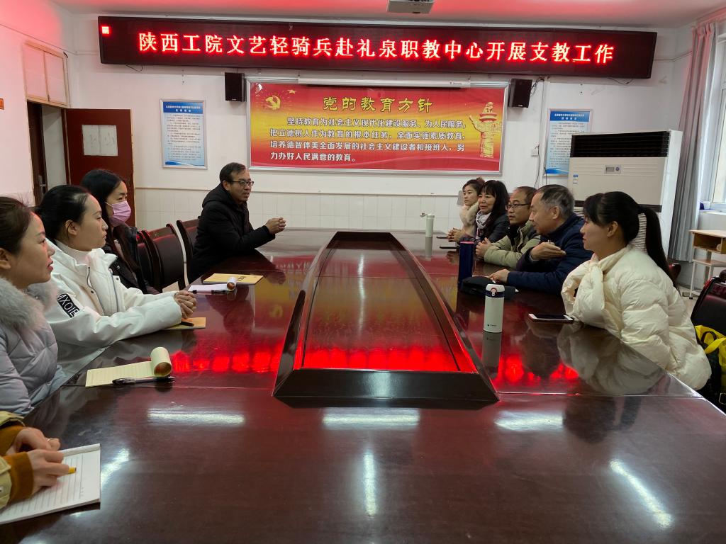 11月25日上午,美育部部长付胜利、办公室主任毛建芳,以及选派的钢琴、声乐、舞蹈、书画等专业教师一行六人,到咸阳市礼泉职教中心开展“双百工程”支教工作。