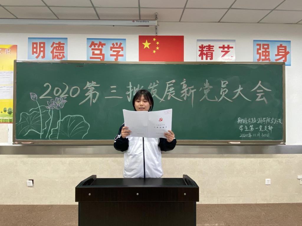 财经与旅游学院党总支学生第一党支部于11月30日下午在崇明楼806教室召开接收预备党员支部大会。此次大会旨在为党组织汇入新鲜血液,增强支部力量,学生第一党支部全体党员、入党培养联系人以及第十一期发展对象参加了本次支部大会。本次会议由支部书记罗峰同志主持。