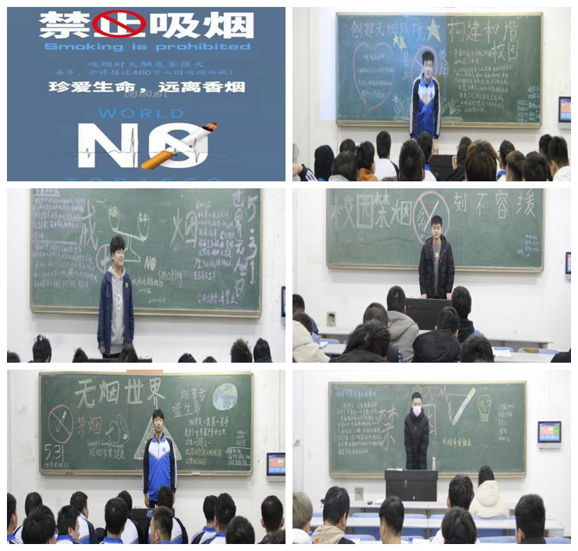 禁烟之行,利人利己,无烟校园,你我共创!为了让同学们正视吸烟危害,戒除吸烟陋习。2020年12月3日晚自习,航空工程学院2019级、2020级各班开展“无烟世界,清新一片”主题班会。