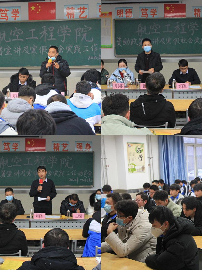 为进一步落实航空工程学院关于组织获奖受助学生开展资助宣传工作和大学生寒假社会实践活动,12月29日下午,航空工程学院资助政策宣讲及寒假社会实践工作动员会在崇明楼104召开,航空学院党总支书记刘军旭、学工办主任张旭、全体辅导员、获奖受助学生代表及学生干部、学生会成员参加了会议。