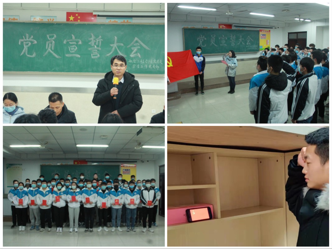 宣誓仪式在庄严的《国际歌》中拉开帷幕,党总支委员张旭宣读了《关于对航空工程学院学生第一党支部38名新发展党员的审批意见》。党支部宣传委员师小娜带领37名预备党员在党旗下庄严宣誓,1名在企业顶岗实习的预备党员在线参加了宣誓仪式。