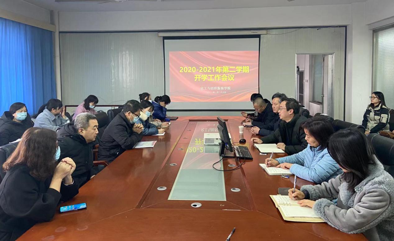 2月26日上午,化工与纺织服装学院在崇文楼811会议室召开新学期开学工作会议,化纺服学院院长王化冰、党总支书记贾格维、副院长刘迪以及学院全体教职工参加会议。