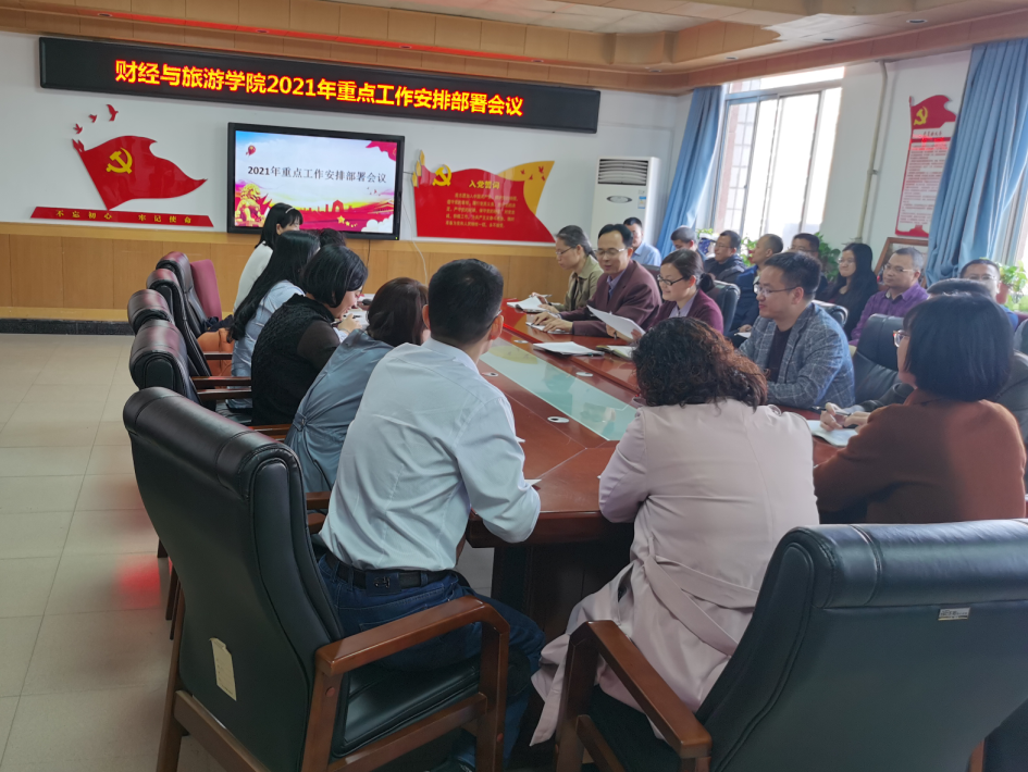 为了高标准高质量完成全年目标任务,争取年终取得优异成绩。3月15日下午,财经与旅游学院召开2021年重点工作任务安排部署会。会议由财经与旅游学院院长吴姗娜主持,党总支书记孙继龙及全体教职工参加了会议。