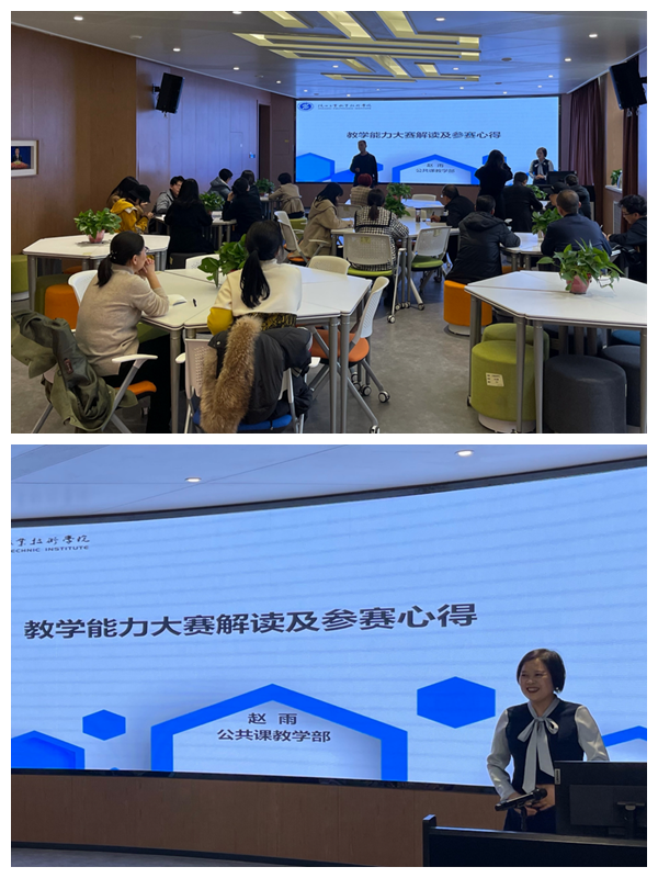 最后,院长王金辉强调,希望全体教师认真把握此次难得的学习机会,结合自身教学实际,会后认真进行消化吸收,并积极以备赛的标准开展日常教学,随时做好参赛准备。今年的参赛教师,务必结合培训体会反思自身的参赛准备情况,认真研究比赛规则,准确吃透文件精神和相关要求,不断打磨参赛作品,力争以高质量的备赛获得优异的成绩,最终达到以赛促教,以教促研,不断提升教学水平的目的。