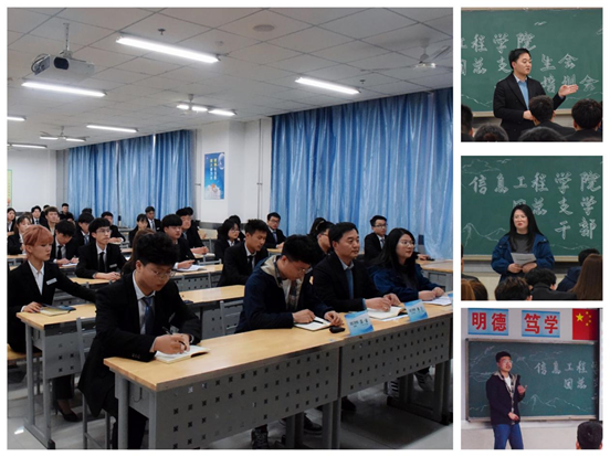 为提高学生干部的政治素养和工作能力,进一步发挥学生干部的先锋模范带头作用,促进学生组织的发展和建设,信息工程学院于3月25日下午在崇明楼203教室召开了团总支学生会学生干部培训大会。学工办主任穆昌,辅导员沈燕丽、郭一豪及全体副部以上学生干部参加了会议。培训会由学生会主席李宁博主持。
