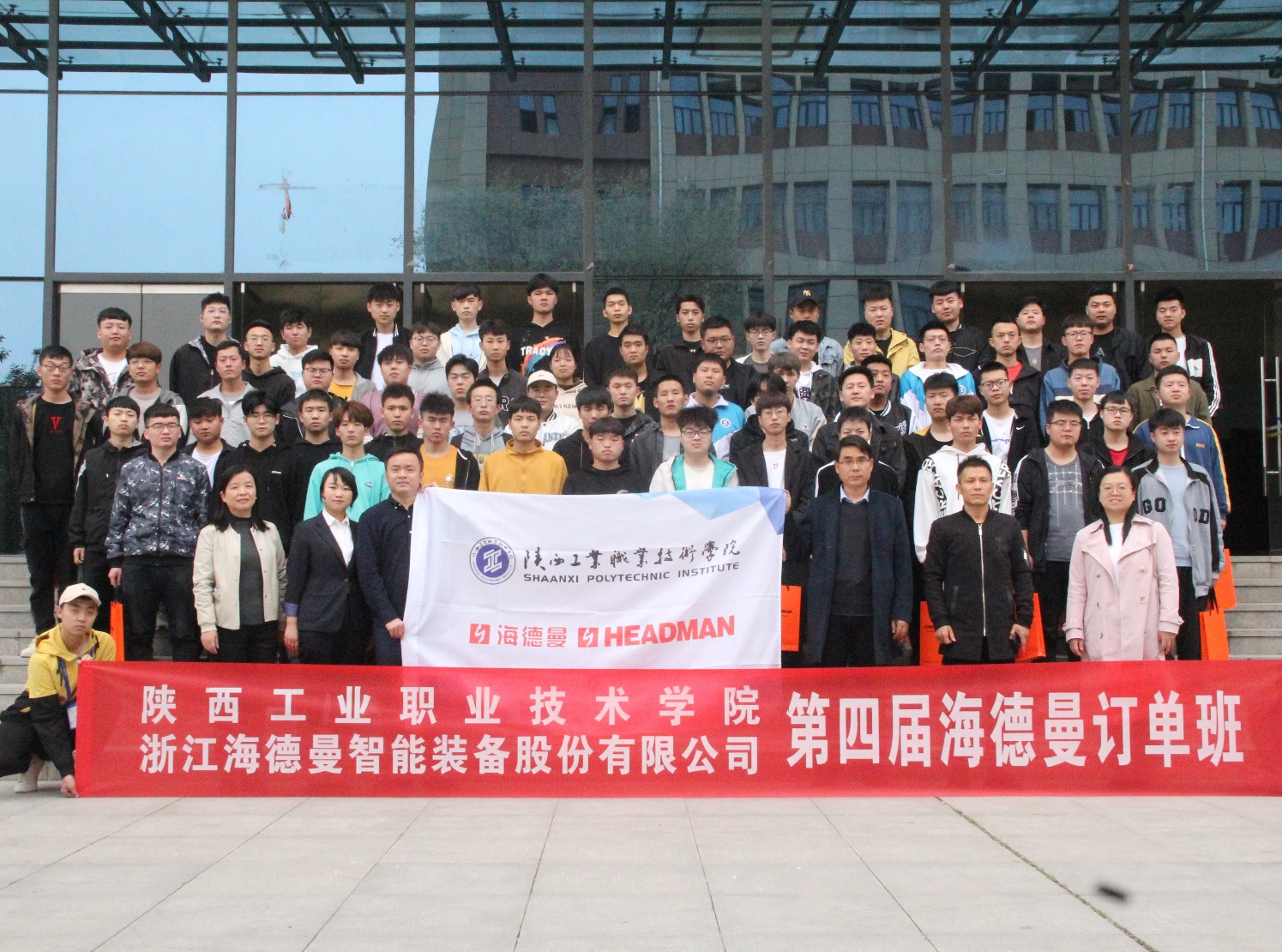 首先,浙江海德曼智能装备股份有限公司人力资源科科长郭献育代表企业对同学们的加入表示热烈欢迎,并详细介绍了我院毕业生在海德曼的发展情况,他提到,截至2021年4月,陕西工院的毕业生在海德曼公司人员占比接近20%,从各类技术研发岗到各地业务精英再到各层级的管理干部,到处都有陕西工院的毕业生。陕西工院的毕业生凭借着自身过硬的技术能力、认真敬业的工作态度以及踏实肯干的工作作风获得了公司上下的一致好评。接着他对公司目前的各方面发展情况进行了详细介绍。讲解后,公司负责人员还向订单班学员赠送了特别定制的学习用具。