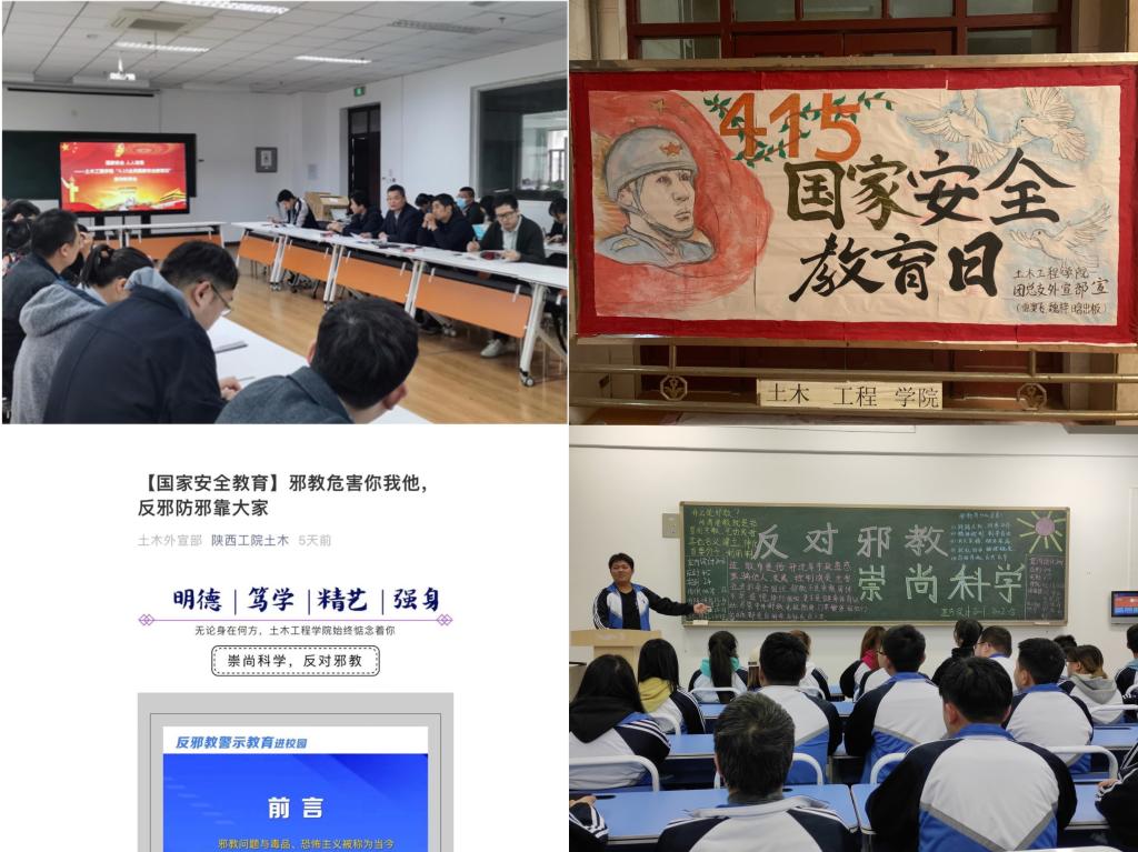 开展专题宣传。土木学院官微发布国家安全教育专题推文,制作宣传教育展板,广泛宣传安全教育知识,引发大家对维护国家安全的关注和思考。土木工程学院党总支开展了“国家安全,人人有责”主题教育宣传会,党总支书记张科海在会上强调了国家安全教育的意义,指出广大教师要主动践行国家总体安全观,以课堂为第一阵地,时刻用党的思想旗帜引领自己,勇于同危害国家安全的行为作斗争,全方位维护国家稳定与安全。