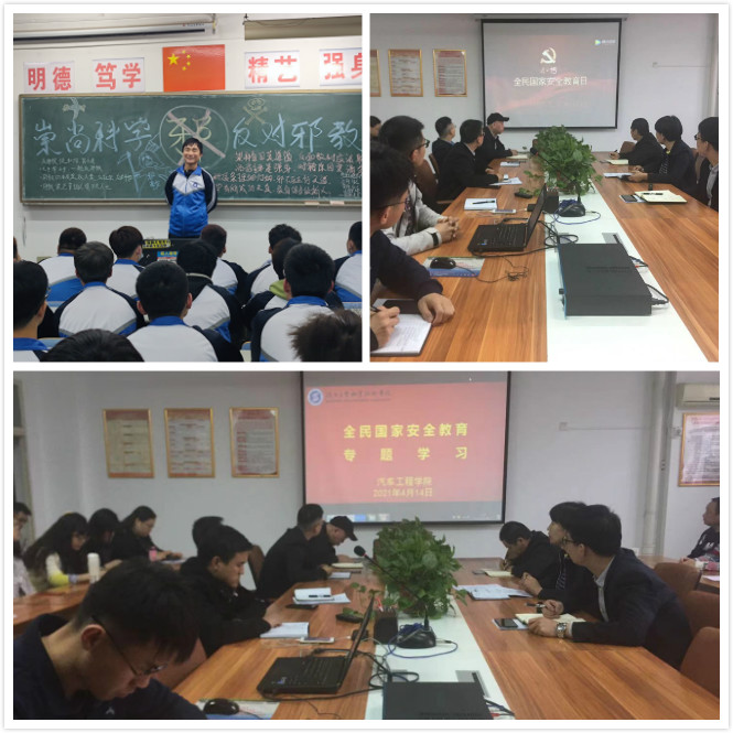 与此同时,汽车学院不断加大宣传,积极营造良好的舆论环境和学习氛围,组织各团支部开展主题班会,学习习近平法治思想、习近平总书记有关国家安全的重要讲话精神以及《国家安全法》《网络安全法》等法律法规,在线观看学习“千万师生同上一堂国家安全教育课”为主题的公开课,参与“全国高校学生国家安全知识线上竞答”、线上警示教育项目等活动。