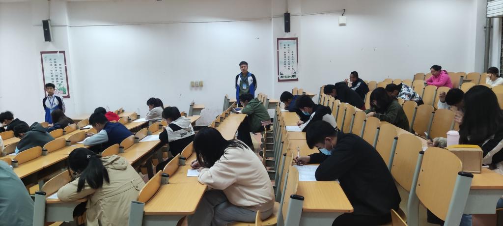 本次比赛以闭卷笔试的形式进行,考题主要由基础题目和综合题目两部分组成。基础题目分为单项选择题和多项选择题,综合题目分为简答题和案例分析题。其中,综合题目中的案例分析题,密切结合大学生在学校生活中可能遇到的问题和情景,着重考察了学生对心理知识的掌握和自我心理调适能力。笔试现场紧张而秩序井然,同学们有序参与、沉稳答题。
