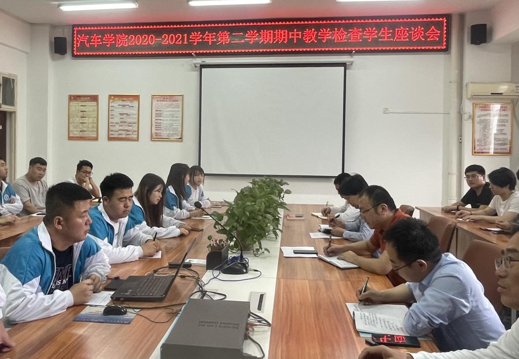 根据学院期中教学检查工作的安排,5月11日下午,汽车工程学院于崇文楼A505会议室召开期中教学检查学生座谈会。学院党总支书记高亚宁、实训中心主任朱辉、学工办主任王禹程、全体辅导员以及各年级学生代表40余人参加了座谈会。
