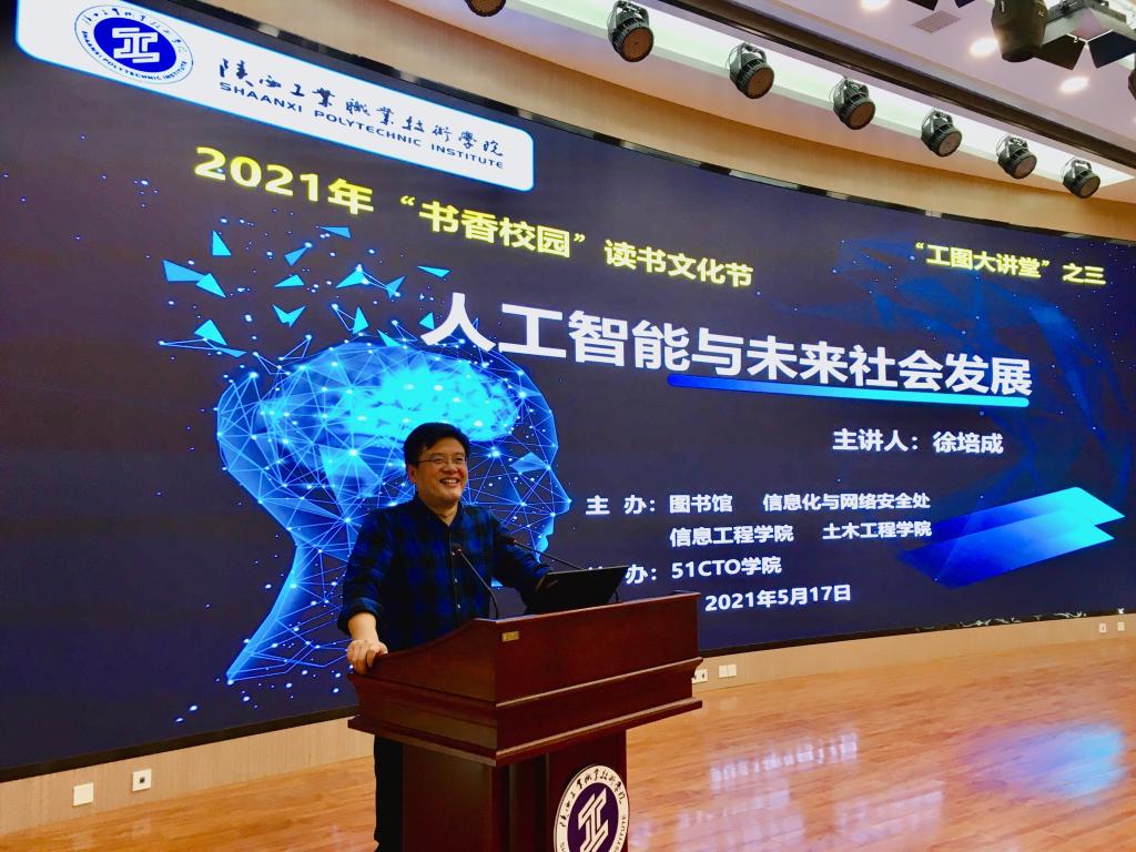 本次讲座是由大数据与人工智能专家、数字化人才解决方案专家、资深软件架构师、高级咨询师、51CTO企培事业部教研总监徐培成主讲。讲座伊始,徐总监与同学们讨论了“人工智能与人类关系”的话题,细数人工智能对人类社会的影响。随后,徐总监从“人工智能概述”、“人工智能运行原理”、“人工智能应用”等方面对人工智能主题做了深入探讨,并作出了具体阐释,用环环相扣的问题引发同学们进行深度思考。徐总监深入浅出的讲解配合着生动的案例与巧妙的比喻,激发了同学们对于人工智能的兴趣,并解锁了看待人工智能的不同角度。讲座结束后,51CTO市场部西北区经理吴阿虎向现场同学介绍了“51CTO学院”的使用流程及操作技巧。
