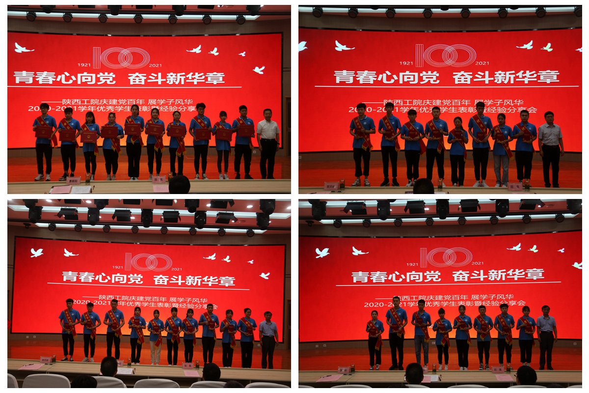 为向建党100周年献礼,充分展示我校2020-2021学年育人成效,6月1日下午,我校在学术会堂举办“青春心向党奋斗新华章——陕西工院庆建党百年展学子风华”2020-2021学年优秀学生表彰暨经验分享会,党委书记惠朝阳、党委副书记贺天柱、党委副书记田昊、二级学院党总支书记、学工办主任、全体辅导员和受表彰学生代表共计400余人参加了分享会。