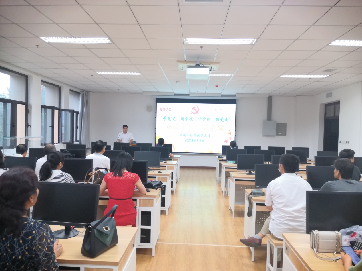 6月2日下午,机械工程学院教师第一支部书记张文亭为全体教师讲授了一堂以“学党史、明党规、守党纪、跟党走”纪律教育为主题的生动党课。
