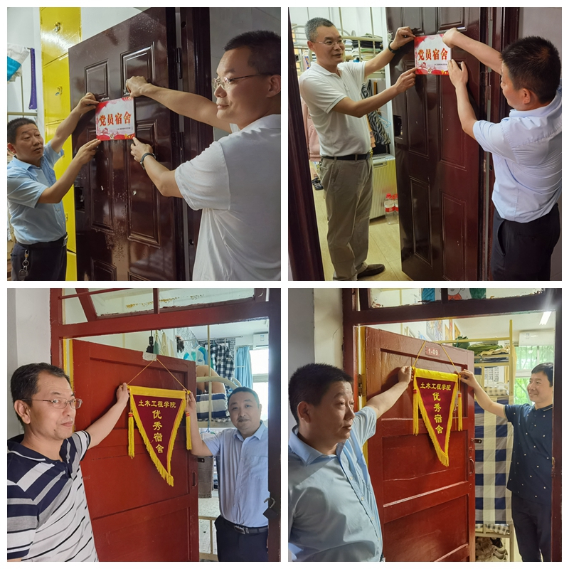 为了持续推进学院学生宿舍卫生整治工作,进一步强化党员党性意识,加强寝室文明建设,营造温馨舒适的寝室环境。6月7日,土木工程学院在至善4号公寓楼及至善1号公寓楼分别举行了学生“党员宿舍”及“优秀宿舍”挂牌活动,本次活动由土木工程学院党总支书记张科海、院长杨谦、学生处副处长杨修国带队,公寓管理中心主任王国柱、学工办主任马俊、全体辅导员以及部分学生干部参加了此次挂牌活动。