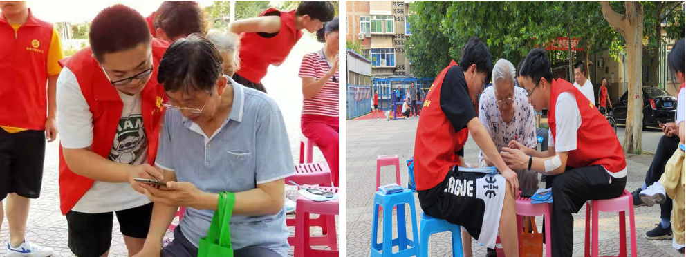 夏风不染白髭须,智慧助老少年行。老骥伏枥,志在千里。老年人是社会发展不可缺少的重要组成部分,面对老年人与智能世界形成的“剪刀差”问题,信息学院与离退处为落实学校“践行红色初心”实践活动,特开展“智慧助老”志愿服务,活动现场30余名“馨暖爱心”志愿者在家属区同乐园广场,为老年人发放《数字扫盲,智慧助老》手册,该手册是指导老年人使用智能手机的“活”教材,同时,为了更好的保障服务效果,志愿者们在现场进行手把手教学、一对一服务,切实解决老年人的“数字鸿沟”问题。