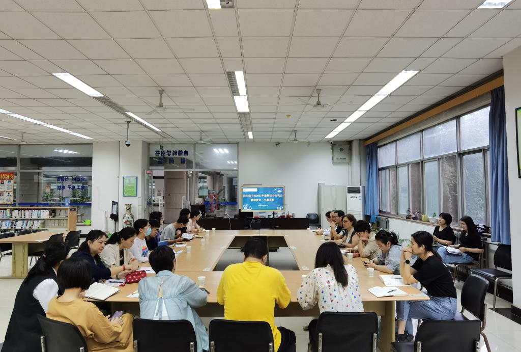 8月31日下午,我校向阳读书社在图书馆二楼阅览室举办“荫荫夏木,书卷多情”2021年暑期读书交流会。校工会主席张彬,图书馆馆长、向阳读书社社长高凤香以及向阳读书社二十多名社员一起参加了交流活动。