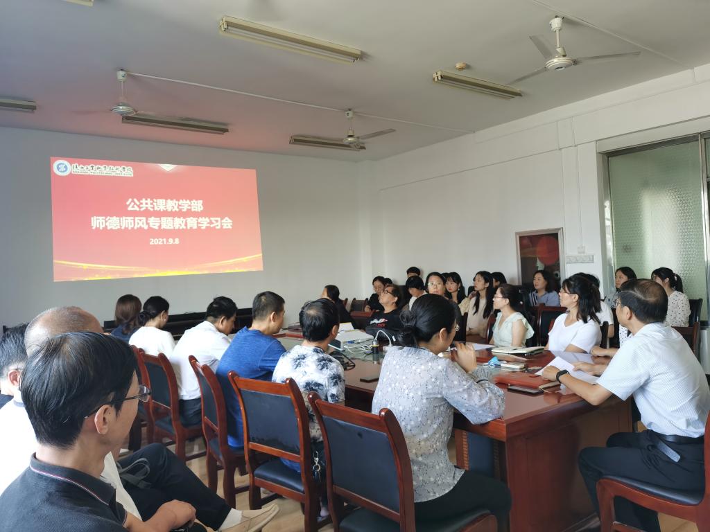 9月8日,在第37个教师节来临之际,公共课教学部组织召开了师德师风学习教育专题会,会议由公共教学党总支书记、公共课教学部部长南欢主持,全体教师参加。